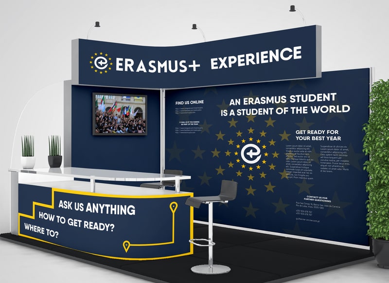 The Erasmus project serves to bring students and learning staff together, for those who share the love of learning, travelling and new experiences. The logo proposal for the brand consists on 3 elements (with 3 articulations). The main piece is the junction between the “e” and the stars, complementing it there is the “Erasmus+” written underneath.