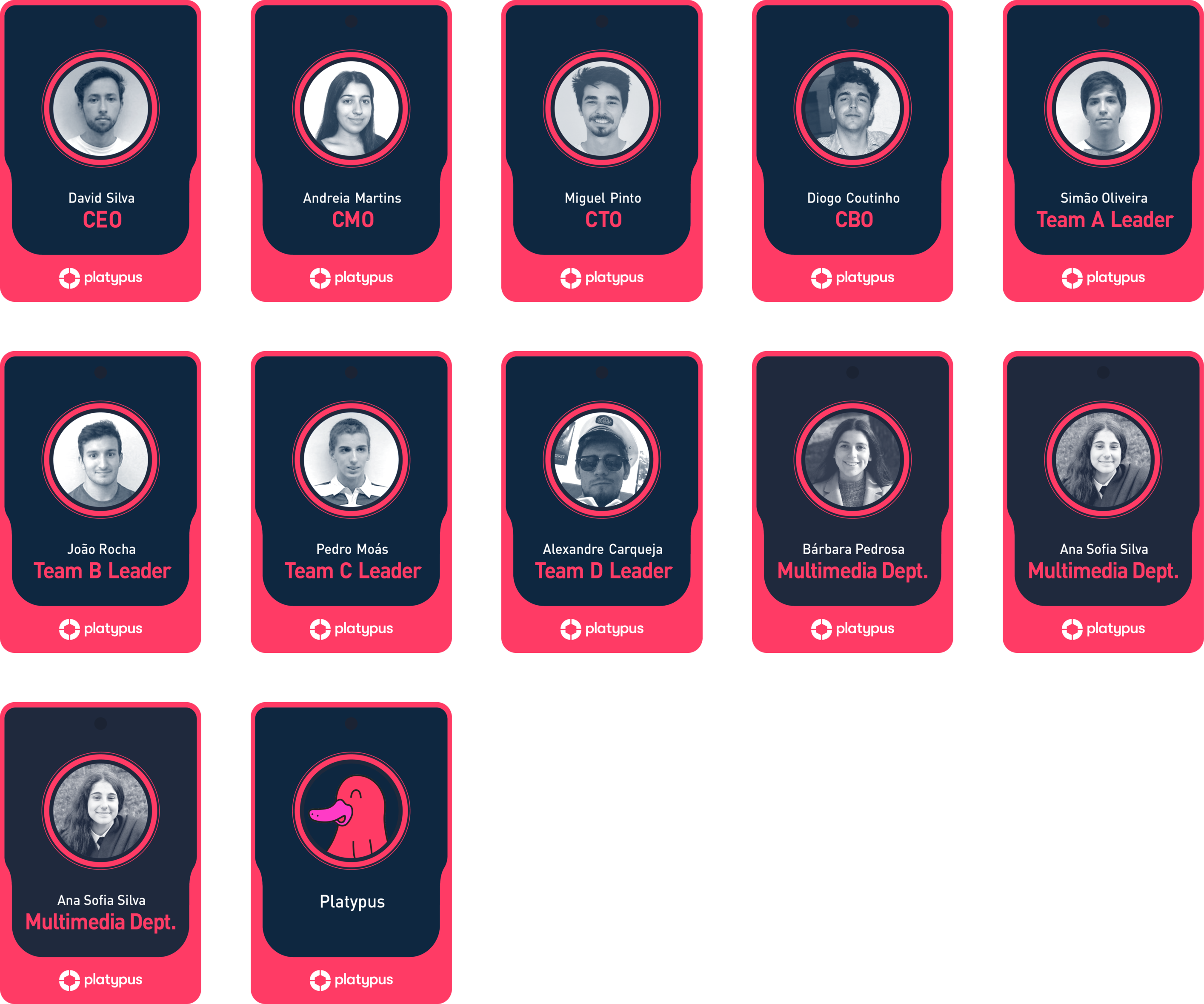 During my curricular internship, I worked within the Platypus Creative Solutions company, a start‑up company created in the Project Management Laboratory course at the Faculty of Engineering, University of Porto. As the company’s Head Designer, I developed the company's visual identity.
